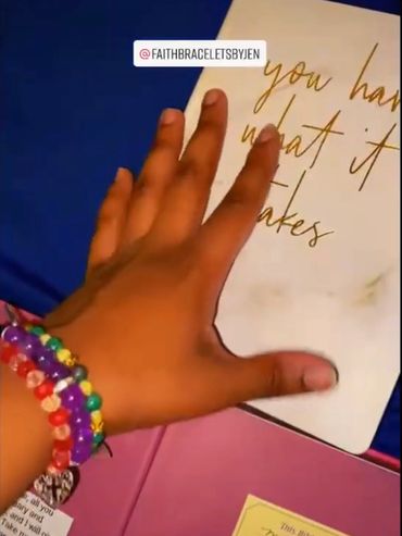 If I can say one word, it'll be "Encouragement"! I want everyone to feel great when wearing Jens Faith Bracelets. Each bracelet can carry a sentimental meaning; whether it's the colors, charms, or the scripture/quote that's packaged with the purchase. This is a Christian based business. Therefore, my prayer to anyone reading this is that